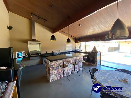 Varanda Gourmet totalmente isolada, com churrasqueira, balcão refrigerado, um lindo e enorme quintal e árvores frutíferas.